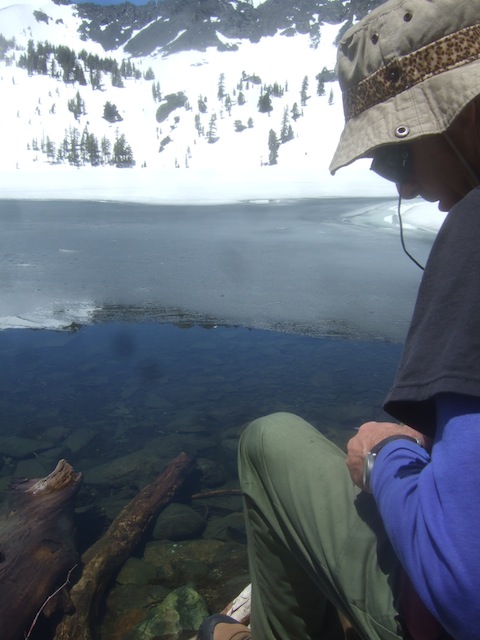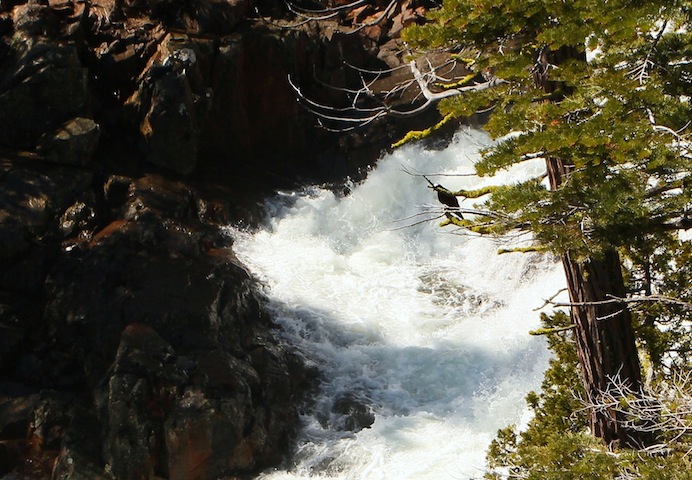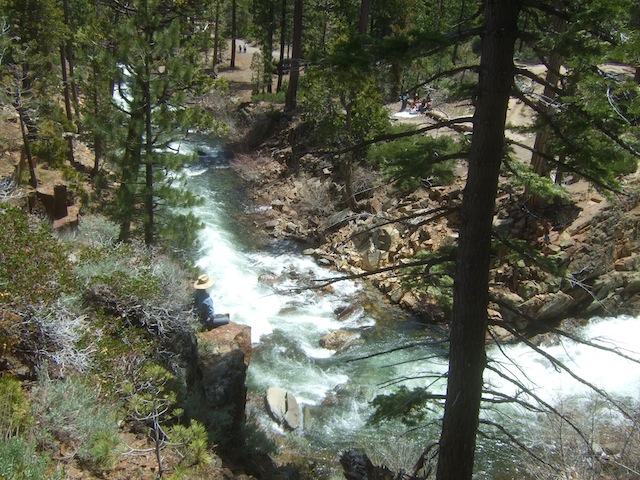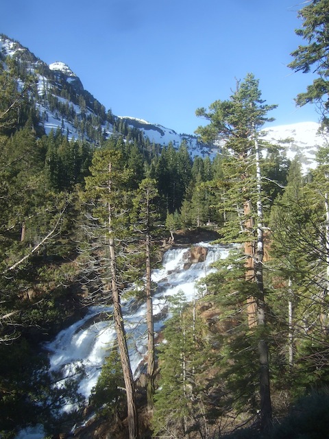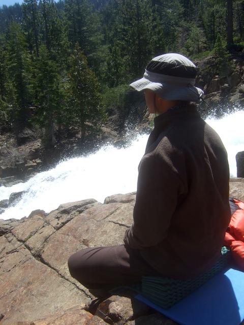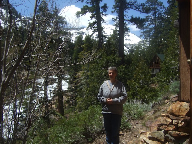Our meditation experiment was made possible by the generous donation of a Tahoe-area cabin for use during a week in the off-season. The retreat ran from June 6 to 11, 2011. We gave a symbolic payment to help defray heating and other overhead costs during our stay, but basically the use of the cabin was a gift. [Note: In years since the first Autsit retreat we have taken to paying for our off-season use of the cabin at half the usual high-season rate, with the cost shared among participants.] Here is a picture of the cabin, which comfortably housed the seven retreatants. The cabin overlooked a waterfall fed by the nearby mountain snow.