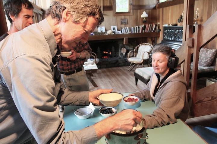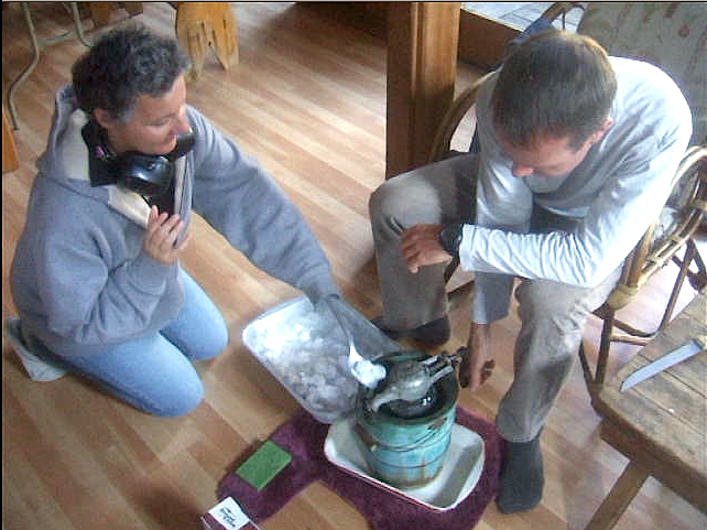 Defying ascetic purity a few beers found their way into our mix. Also, Mozart and Gilbert and Sullivan were played on the piano. Purity received a further blow by way of our ice-cream making, which in meditation-contrary fashion we tried to speed up through the use of dry ice. Turned out we didn't have quite enough dry ice so we mixed in the usual water ice and braced ourselves for an explosion that failed to occur. Cool smoke did, however, come out the drain hole on the green bucket. We discovered several reasons not to use dry ice to make ice cream, not least that it makes the ice cream taste like soda water. The taste went away by the following morning, however.