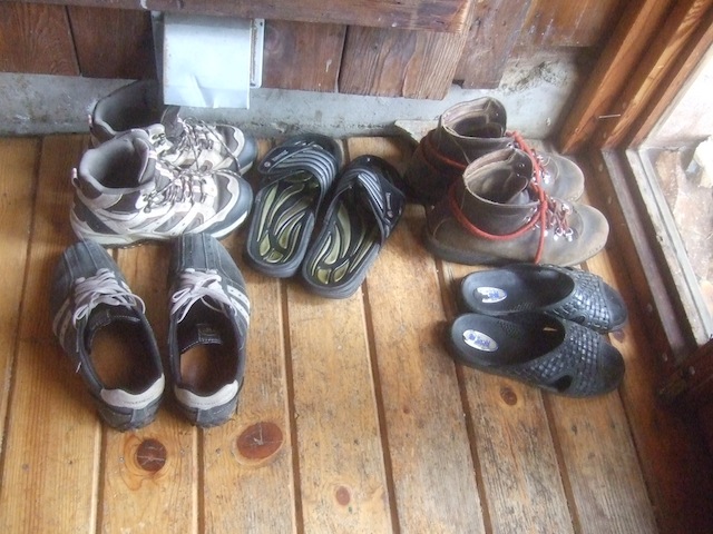 Shoes before we installed a shelf for them