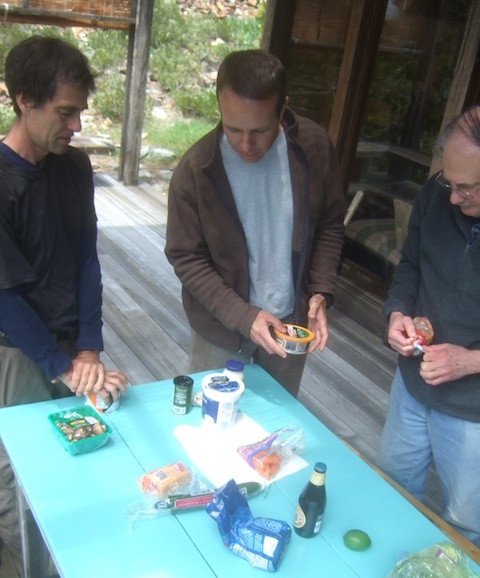 At the start of the retreat we all went food shopping in the town ten miles away. Supermarkets can be pretty stressful for autistics affected by crowds and sensory overload, so the joint decision-making about food and the shopping together were practices in themselves. One of us paid for all the food and we split the tab at the end of the retreat. The total came to about $8 per person per day. Those who brought their own foods for special diets paid a smaller share in the end. We bought largely organic produce and one serving of fish that we learned too late may have been on the Monterey Bay Aquarium's list of threatened fish species. :(