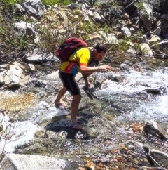 After losing and recovering a light-saber water bottle, we made it to Susie Lake where John, veteran of a swim across the English Channel, went for a dip (the white streak on the left there) and commented, "It's colder than the Bay." Indeed. That's a practice to focus the mind.
