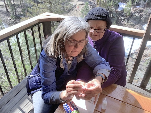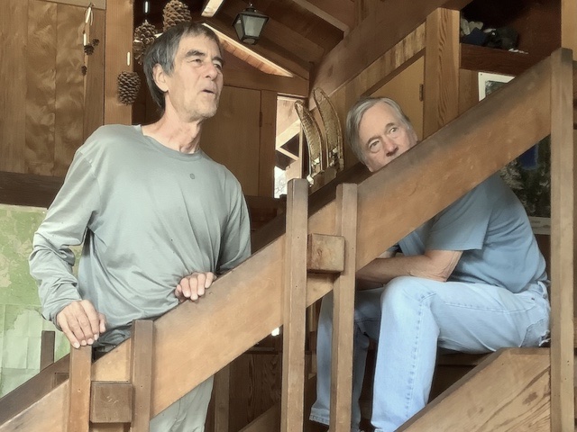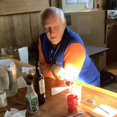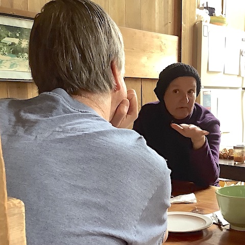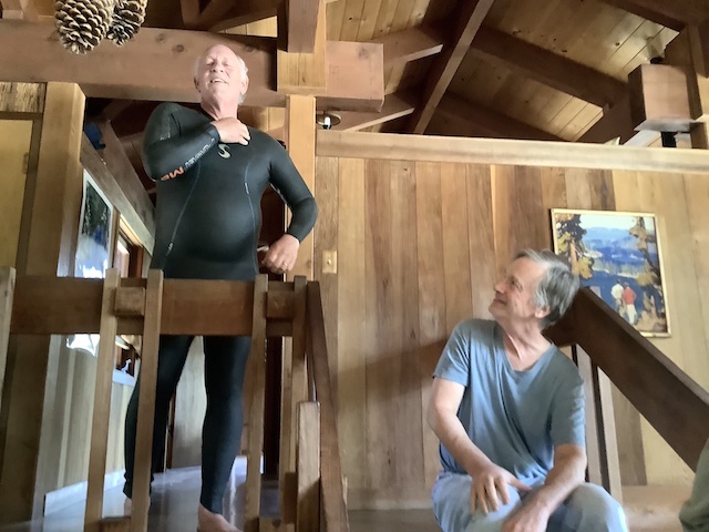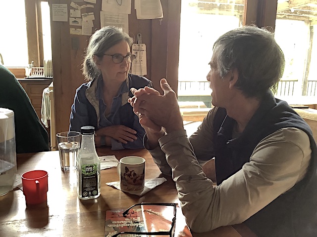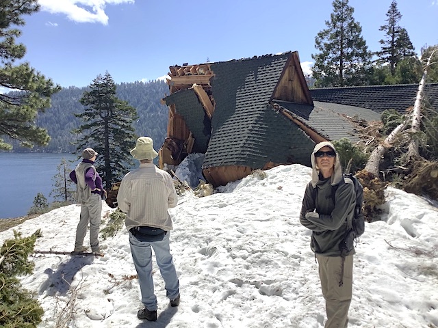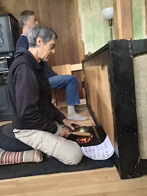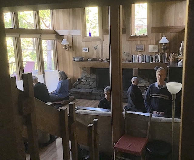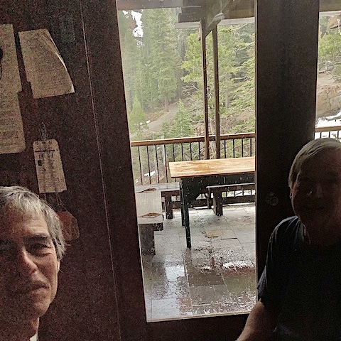 We had six sitters at Autsit this year, including newcomers Richard and Michelle, and veterans Paul, Hal, Anlor and Greg. Unfortunately two others could not make it due to a family emergency in France. It was good to be back after the year's hiatus! The huge winter preceding had us worried we might not even be able to get in, but apart from big potholes on the road and a water-main leak that had to be repaired all went well, with pretty sunny weather interrupted by rain only once despite dour prognostications. We followed the same schedule as in recent years: In addition to the many hours in the zendo and the usual silence until noon, Autsit this year reprised the group hike to a "hermit hut" in the wilderness. Highlights this year included a roaring waterfall due to the big winter, a nearby cabin smashed by an avalanche, culinary treats from Michelle and Richard, and shortly before most arrived, a bear.
