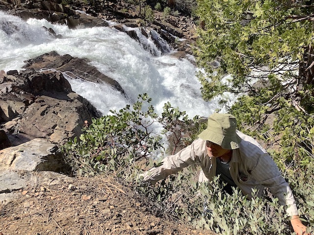 Hal scaled a cliff above the waterfall.