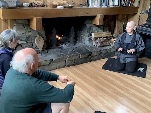 Anlor being the zen priest she is, before our cozy fire. We talked about meditative practice for all sorts, including the God-lovers among us.